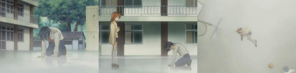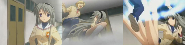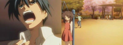 『古河!!』『・・・岡崎さん。』『ばかか!おまえ!雨降ってるんだから、帰ればいいだろ!』